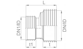 Innvendig normert - Di eller DN-ID - Rør med innvendig målt diameter. Del er bygget opp av muffe + muffe. For å koble en spissende rør mot en spissende rør. Tetningsringer kommer i tillegg.